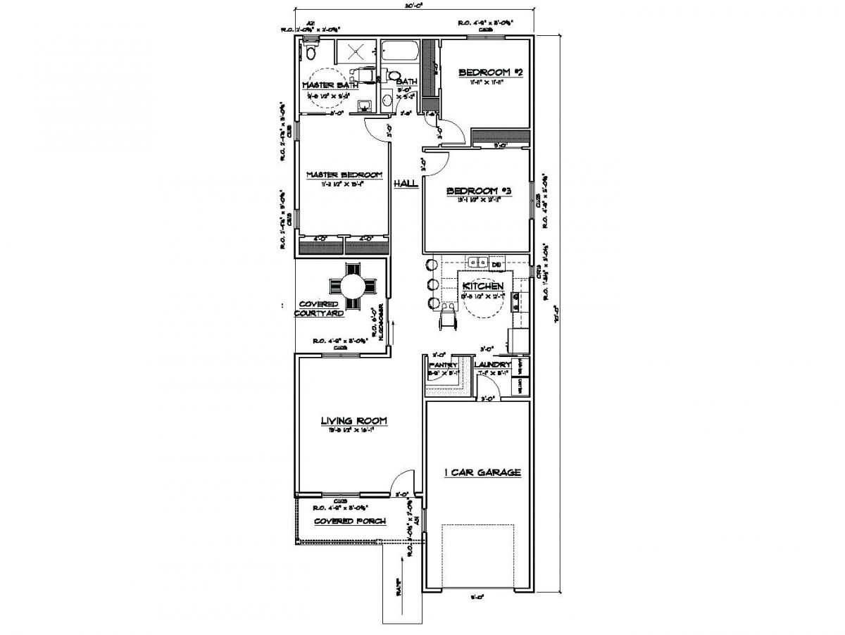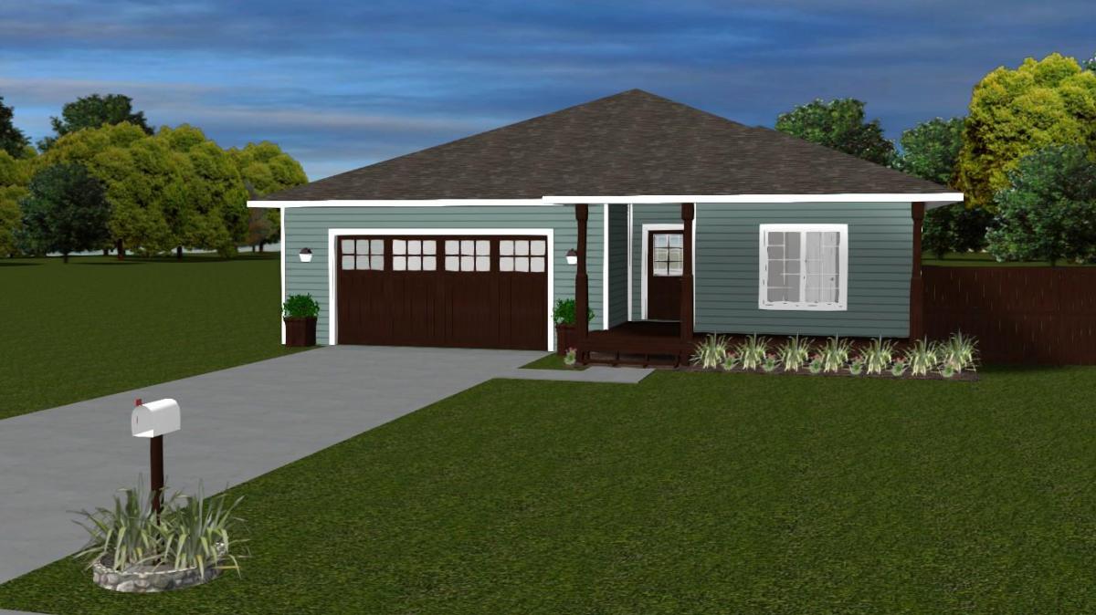 An excellent floor plan for a narrow lot. The Green Ranch features a covered front porch located right off the living room. A private courtyard located off the back living area creates the perfect outdoor escape. Special Features: 1 ADA bathroom.