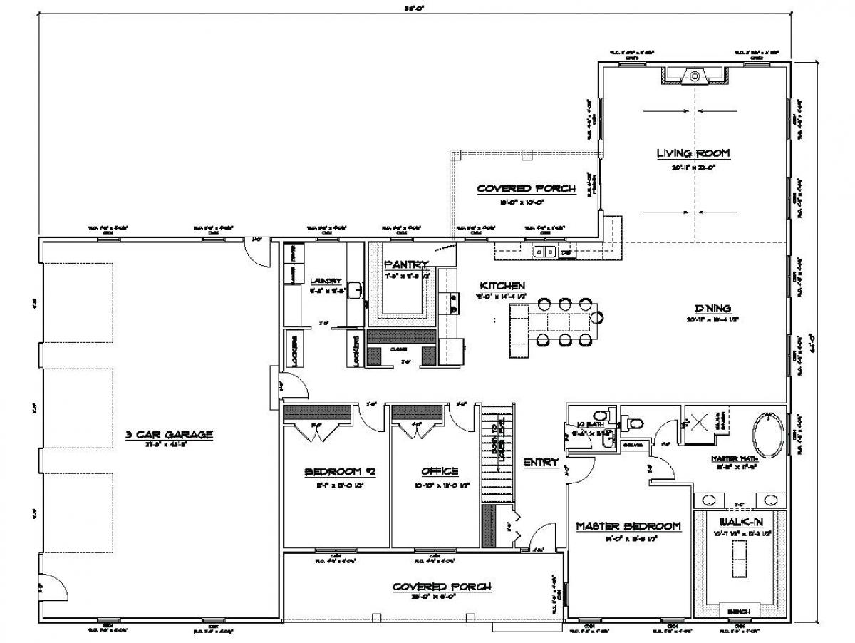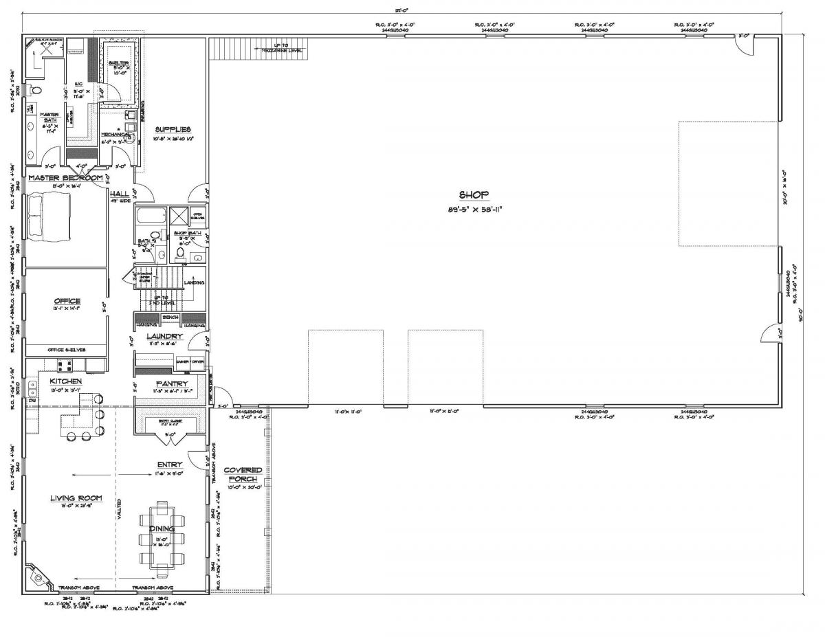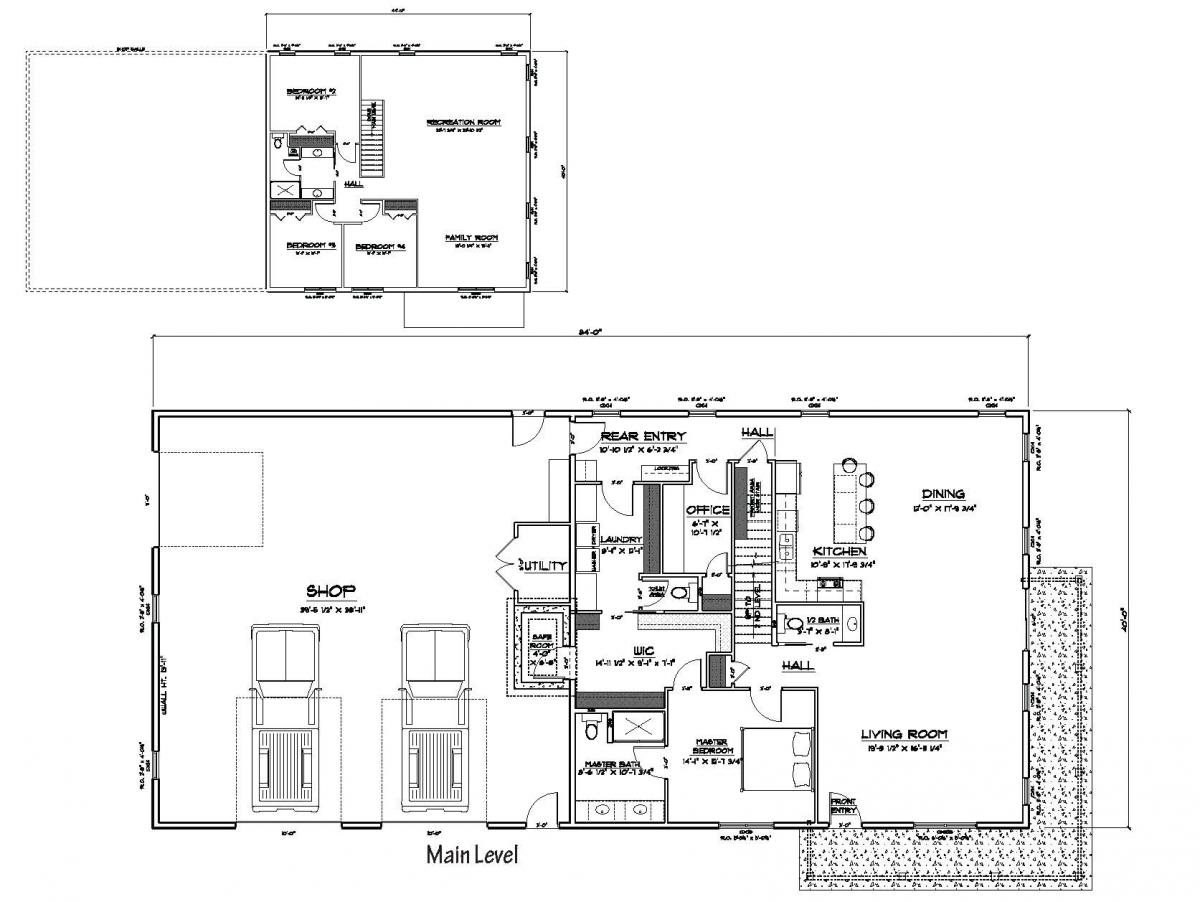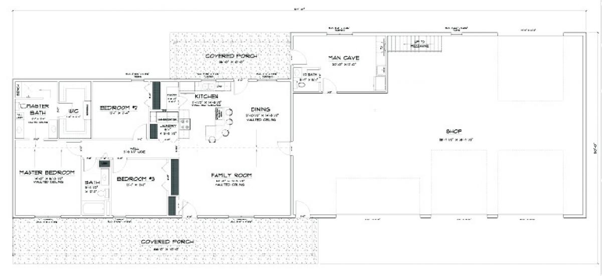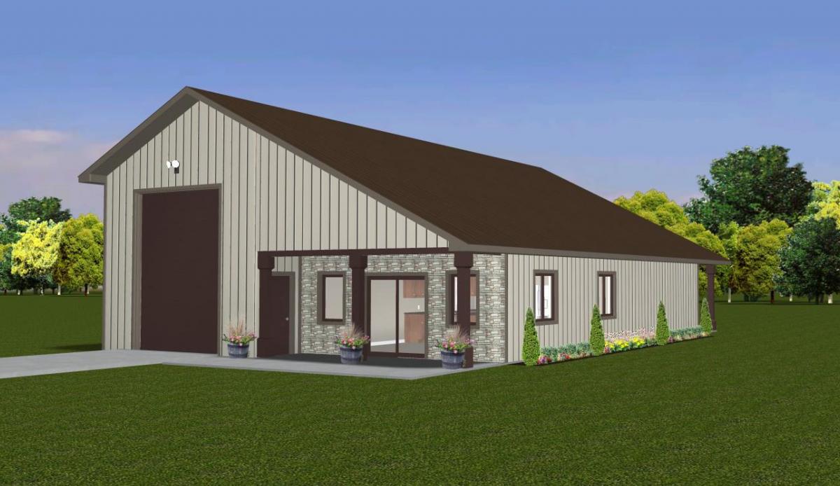 When it comes to shop vs. living space – there is no compromise needed with the Rose Mount shouse plan! This plan incorporates an 1800 square foot contemporary 3-bedroom 2-bath home with a large 48’x76’ Solid Core shop. The home features an open concept kitchen/living/dining room area. The master bedroom has its own bathroom suite that includes a large walk in shower. Attached laundry and mud rooms are adjacent to the shop area with a shop bath just outside the doors.