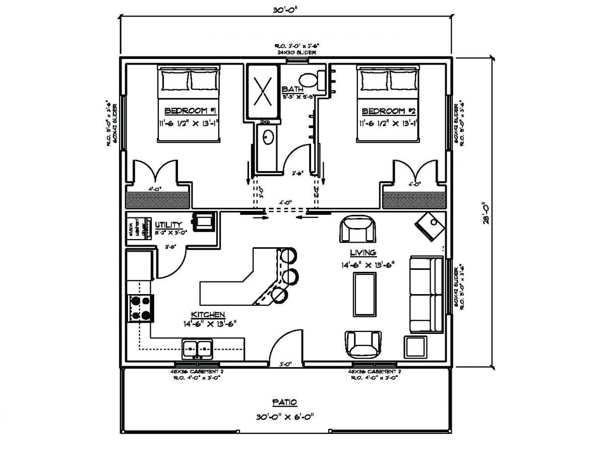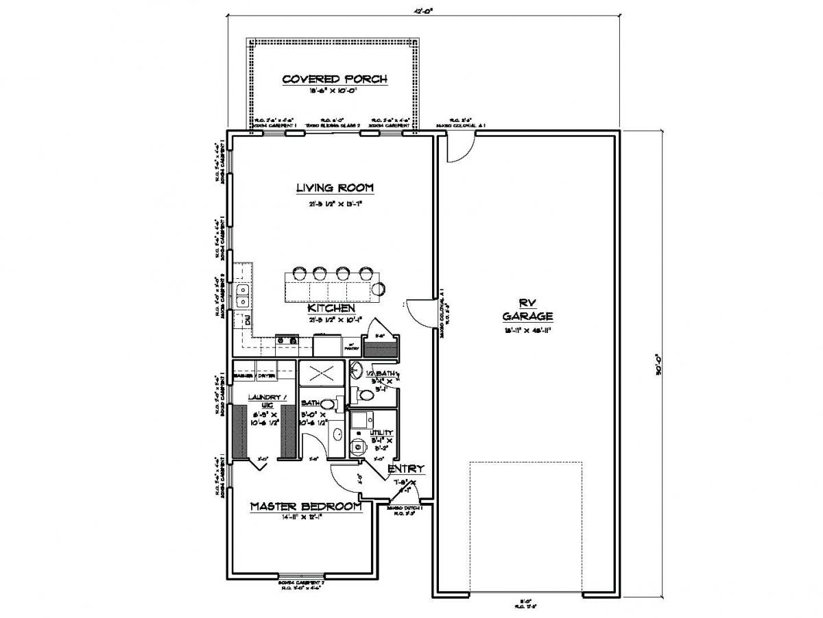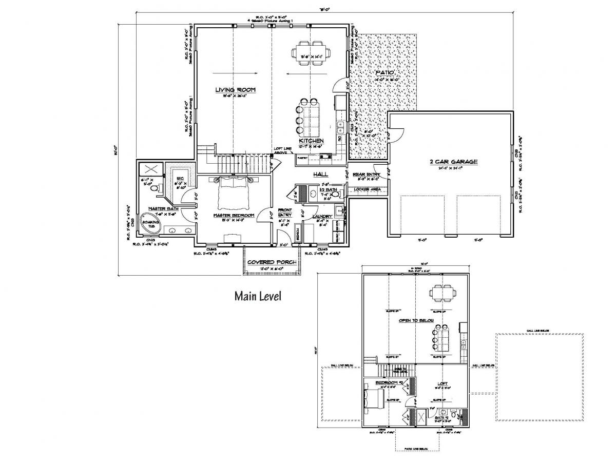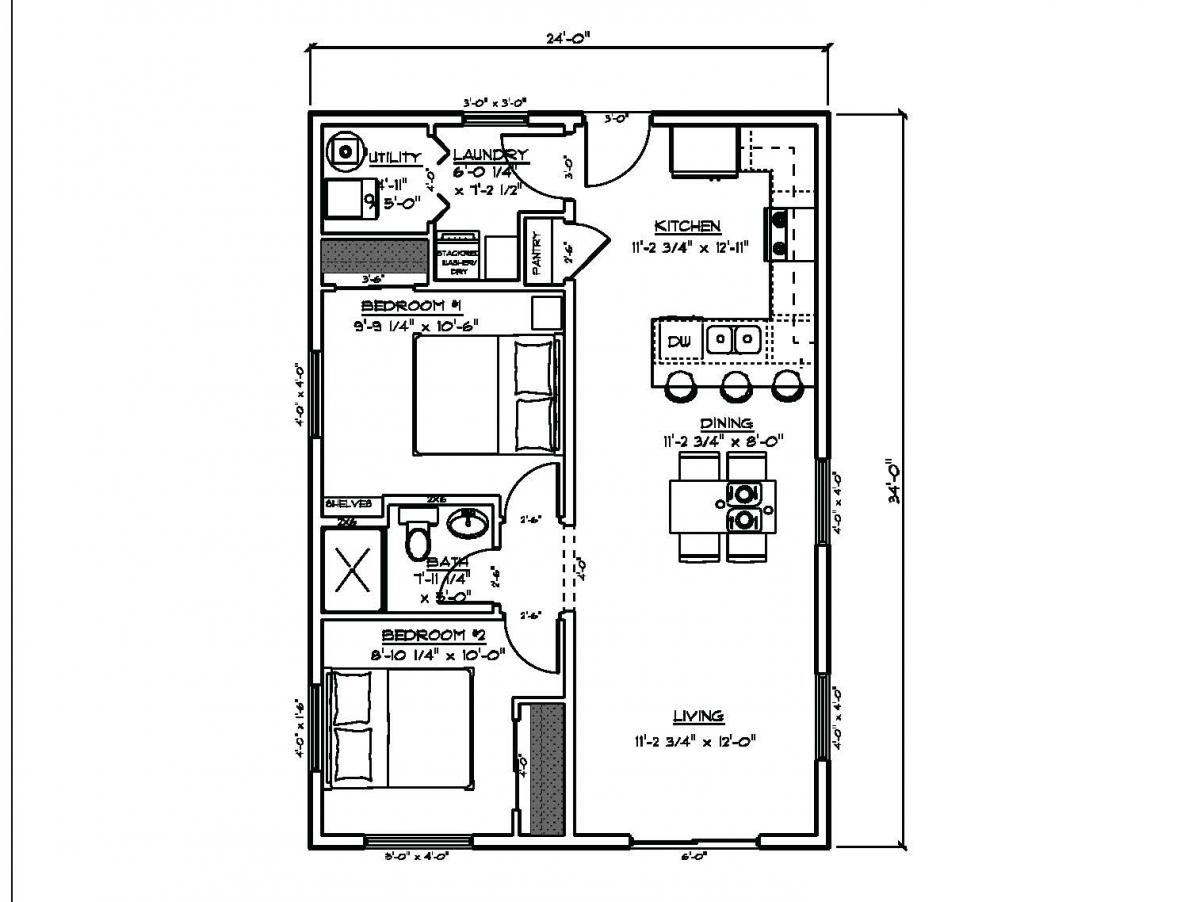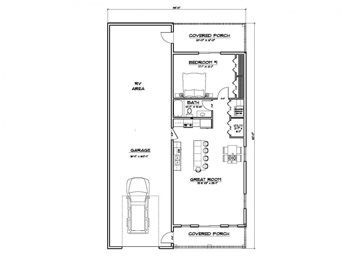 A little larger plan with 1 bedroom and a spacious kitchen/dining/great room. Bedroom has a walk-in closet and a roomy bath. The plan also incorporates a main floor laundry and furnace room.