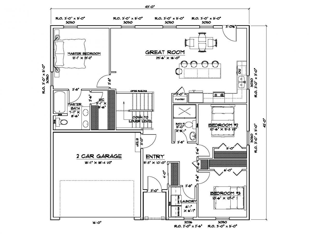 This floor plan maximizes square footage! It features three bedrooms and two bathrooms in just over 1300 sq. feet, plus an open great room/kitchen area. Special Features: Main floor laundry room.